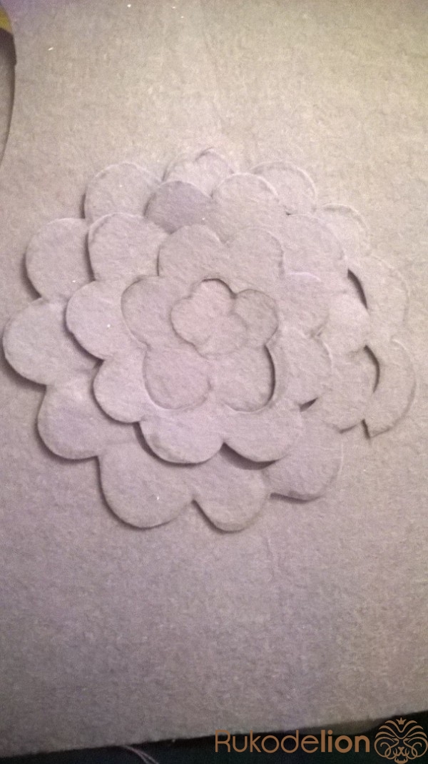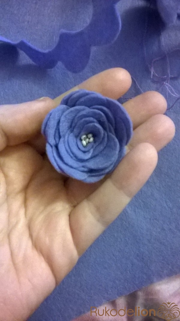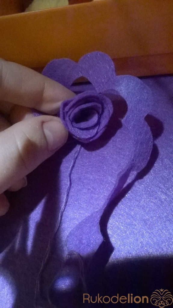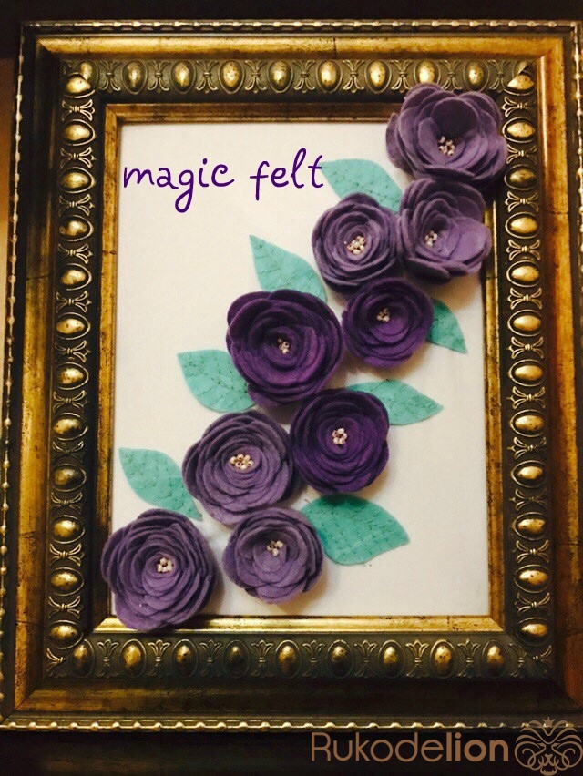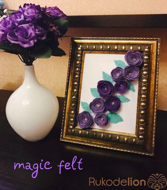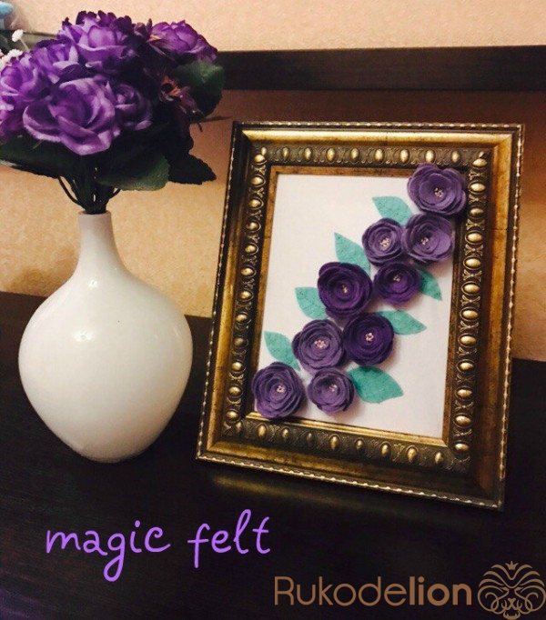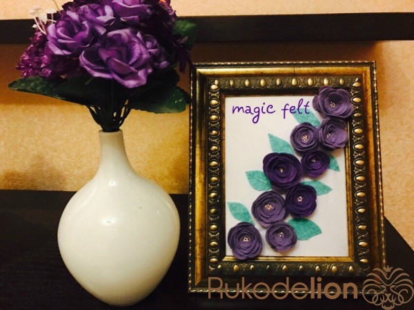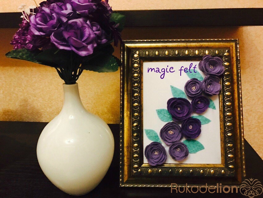 Картина "Нежная роза" фетр жесткий, фиолетовый, сиреневый, зеленый, нитки мулине