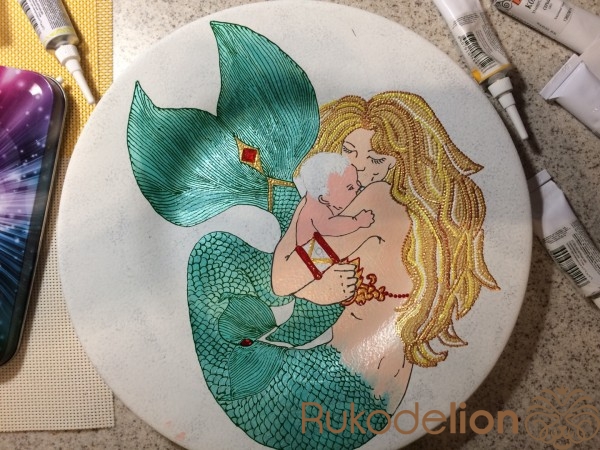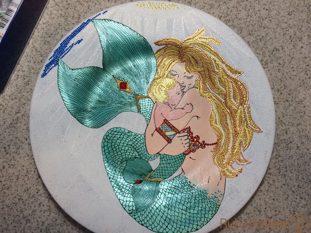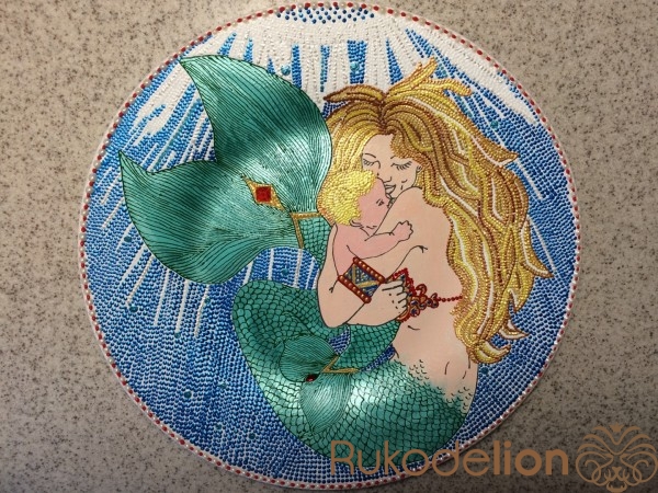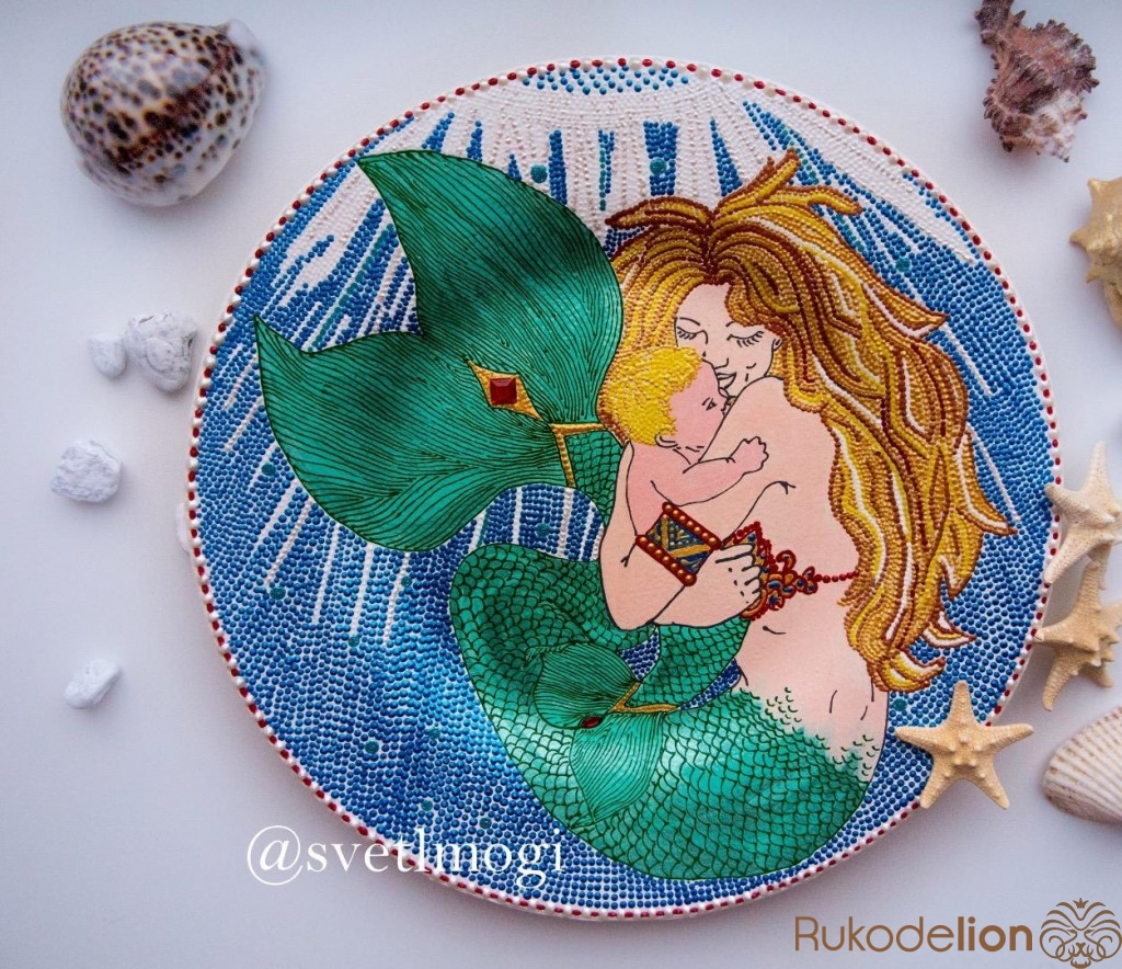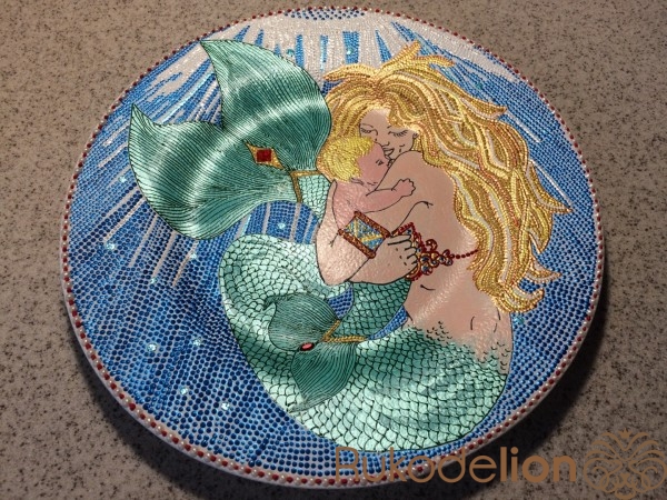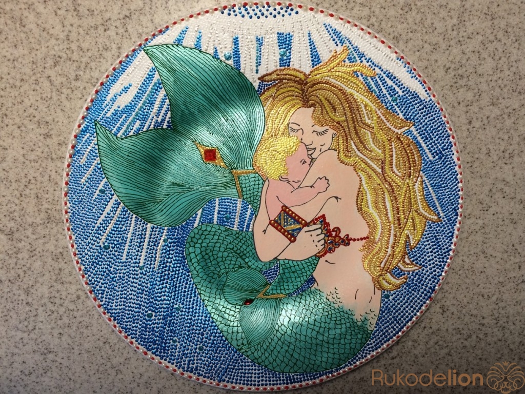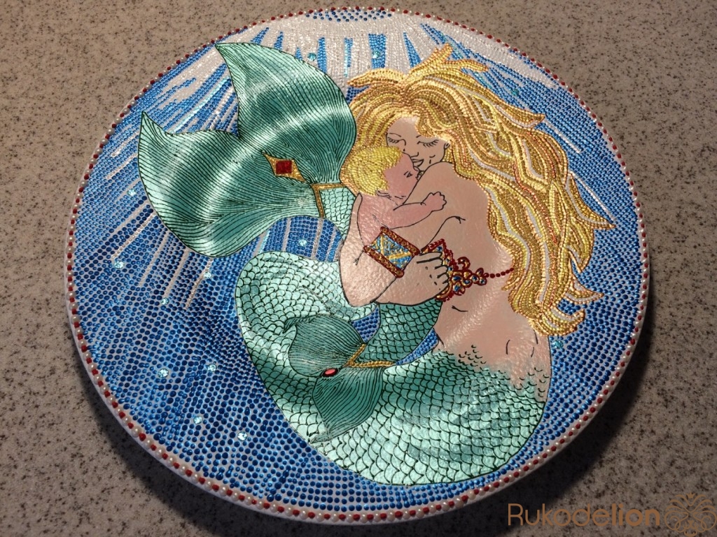 Тарелка декоративная "Мамина нежность" выполнена в технике "точечная роспись" акриловыми красками и контурами
