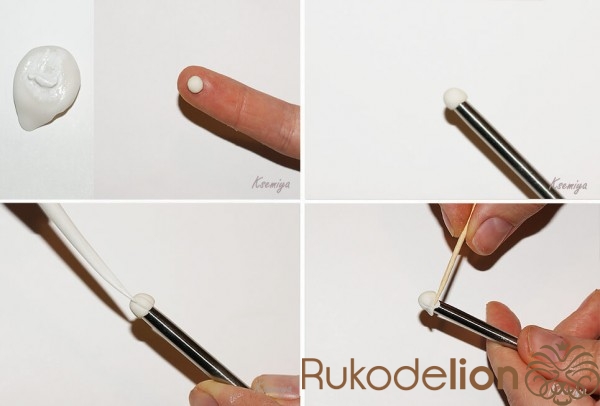 Замешиваем в глину белую краску. Формируем шарик диаметром 0, 5 см. «Надеваем» шарик на округлый кончик основного стека.Делаем 6 канавок, глину не прорезаем, а только слегка вдавливаем У нас должно получиться 6 секций.