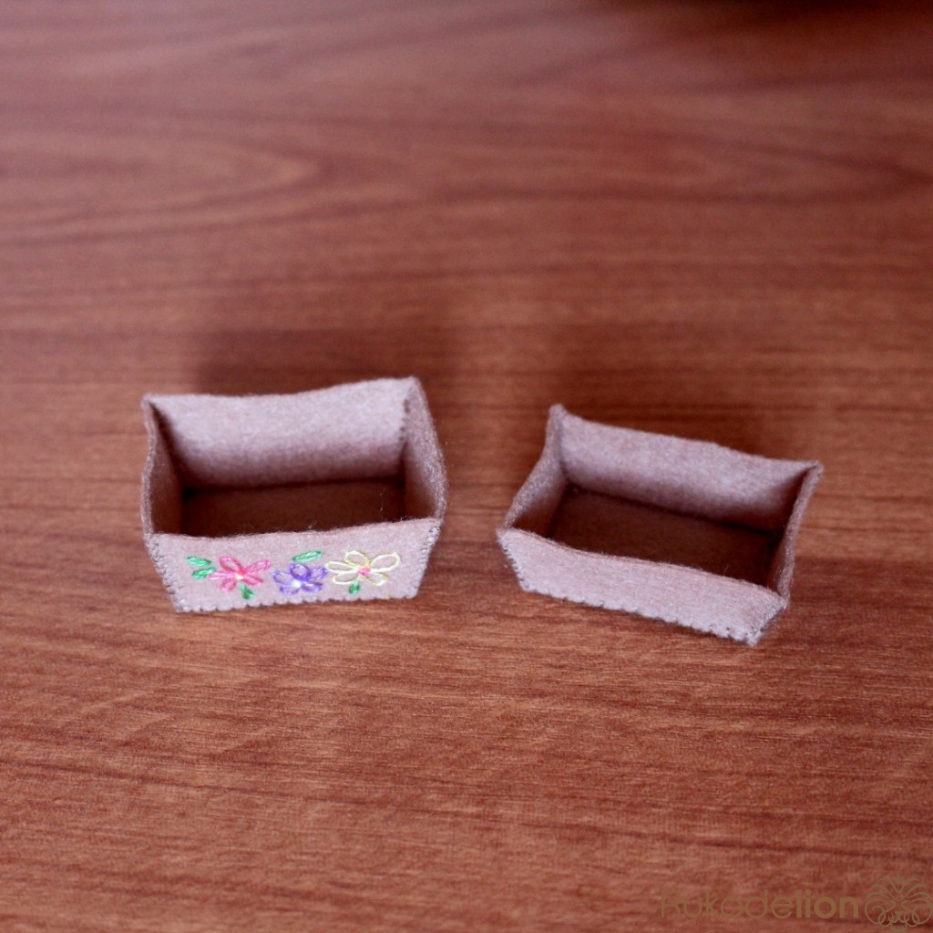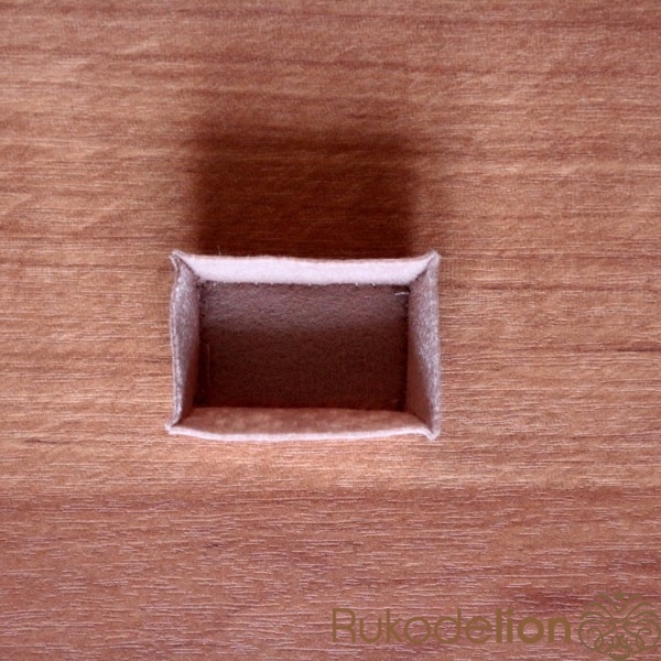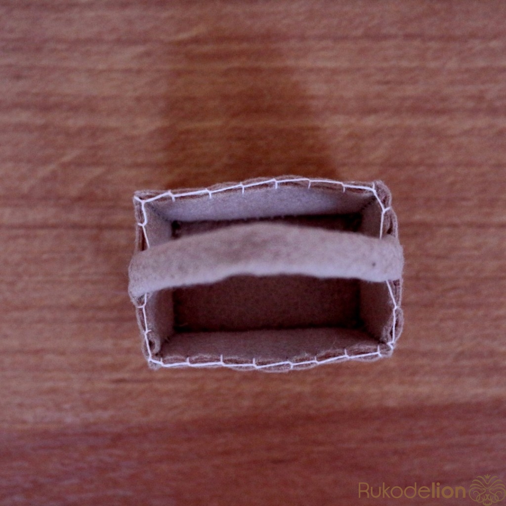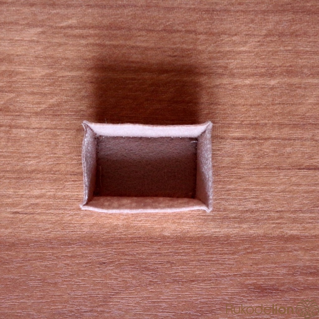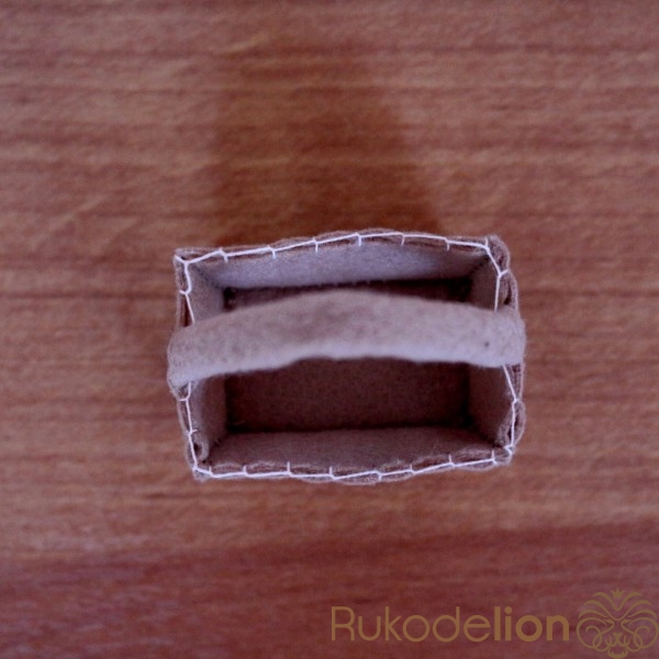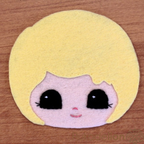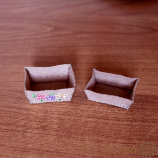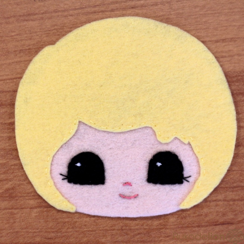 Нам нужно сделать мордочку кролика на одной из половинок шапочки. Пришиваем мордочку, на которой будет сам носик швом applique stitch (шов для аппликаций), вышиваем носик коричневыми нитками швом satin stitch. И в последнюю очередь вышиваем глазки швом stem stitch. Закрепляем все нитки с внутренней стороны.