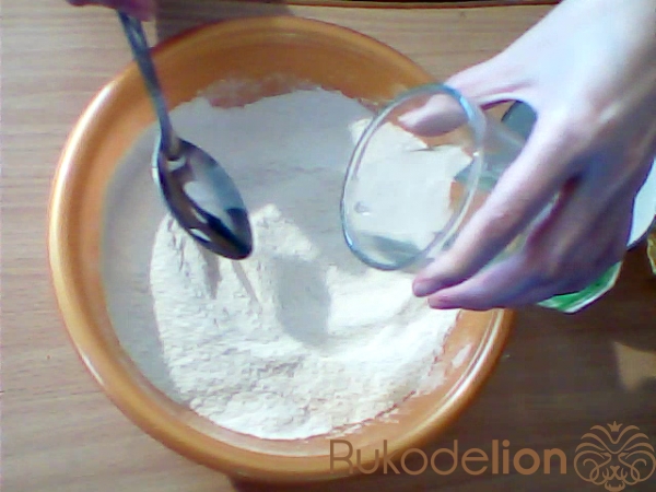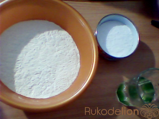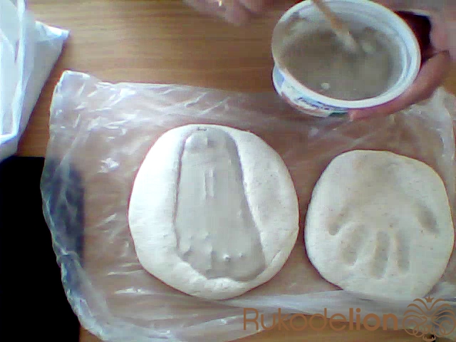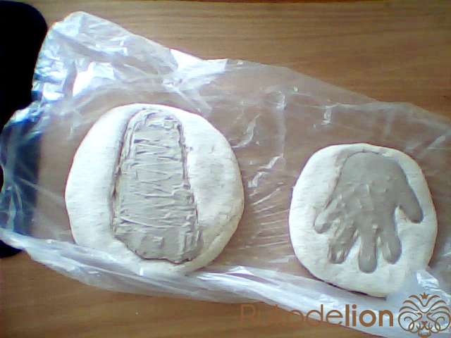- соленое тесто (мука 1 ст, соль 1 ст ,вода 1/2 ст, масло подсолнечное 1 ст. л.)