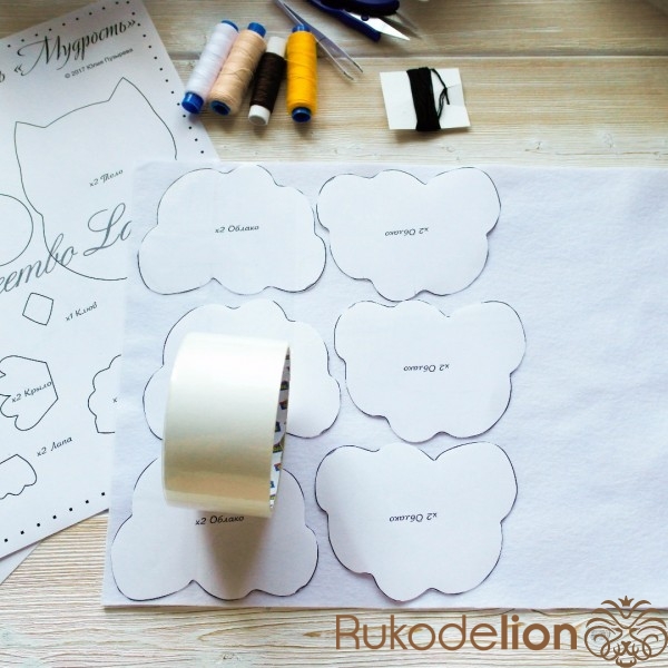 Распечатайте и вырежьте полноразмерные выкройки в формате A4. При помощи скотча закрепите