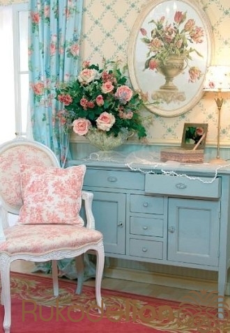 Пастельные тона, викторианские мотивы, красивые розы, ангелочки, винтажные кружева, текстиль и налет старины – вот его основные особенности и характерные черты.