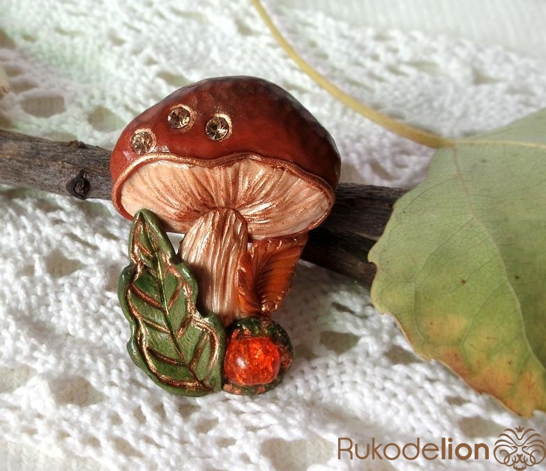 Брошь с грибом из полимерной глины