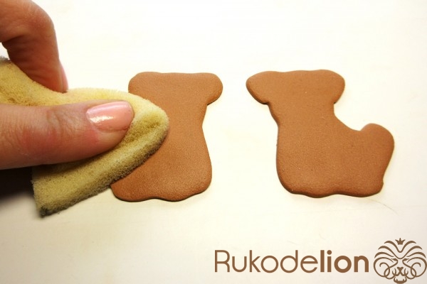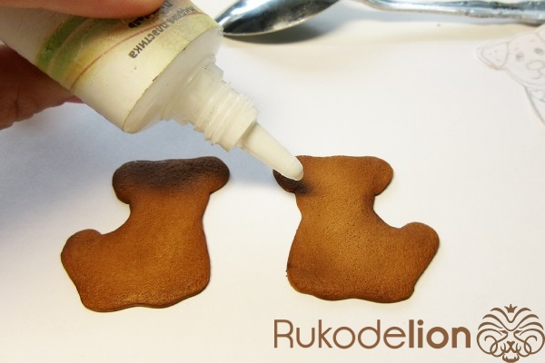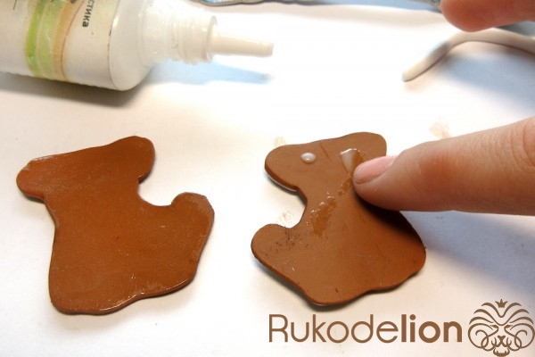 Обратную сторону заготовок смажьте тонким слоем жидкой глины.