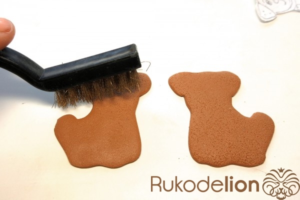Если вы хотите, чтобы поверхность получилась еще более шероховатая с мелкими точками-углублениями – постучите по заготовкам зубной щеткой (затем эту щетку можно будет использовать только для работы с полимерной глиной).