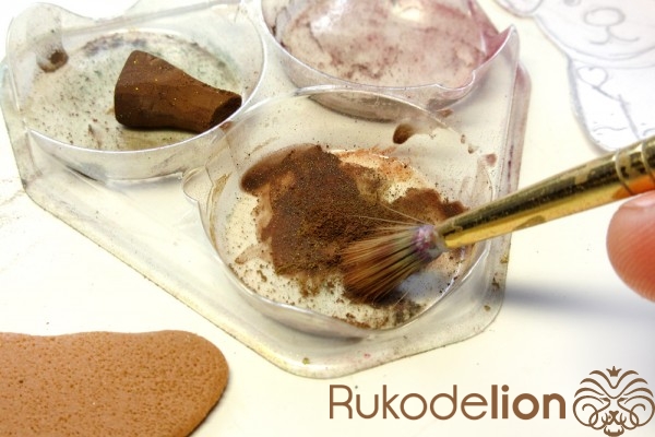 На упругую кисть возьмите небольшое количество пастели, отряхнув лишнее.