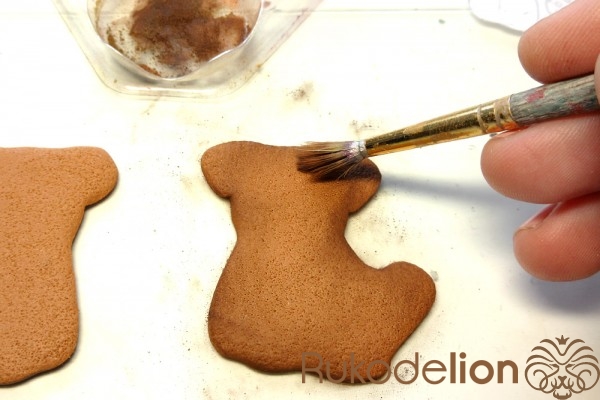 Окрасьте темно-коричневой пастелью края обеих заготовок-собачек.