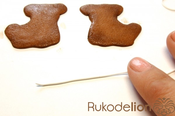 Когда наши заготовки запекутся, достаем их и оставляем на столе, чтобы они остыли. Тем временем из белой глины катаем колбаску толщиной около 5-6мм