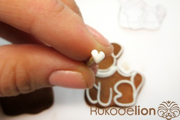 Из маленького шарика белой глины сформируйте сердечко и прилепите его сбоку ошейника.