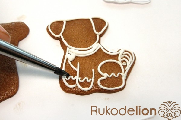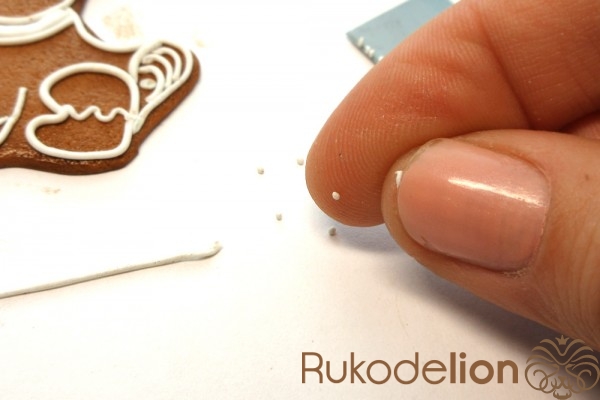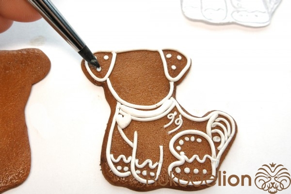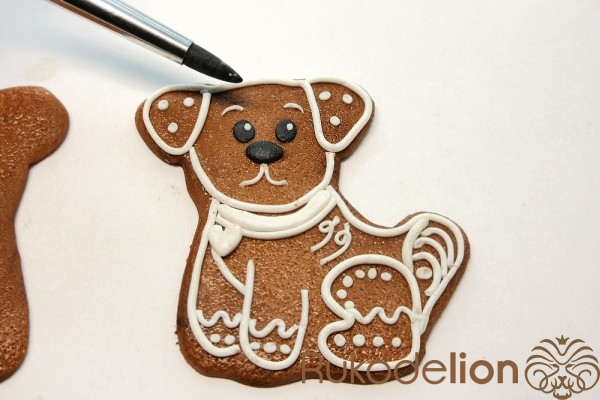 Из более тонких белых колбасок сделайте волнистый узор на лапах, украсьте хвостик и ошейник.