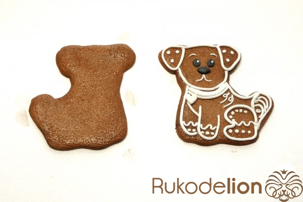 Затем одну из собачек переверните лицевой стороной вниз, чтобы одна собачка смотрела влево, а вторая - вправо.