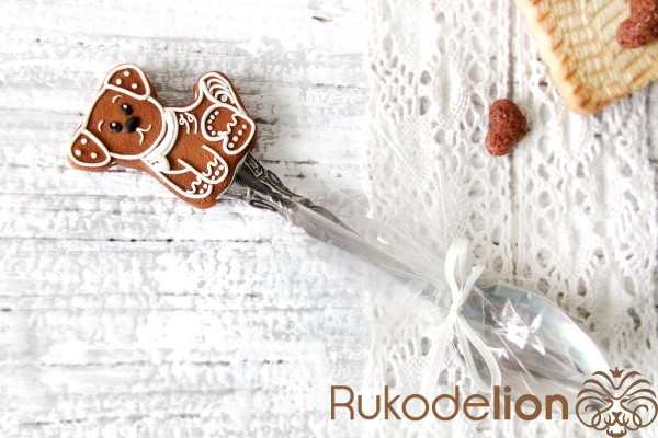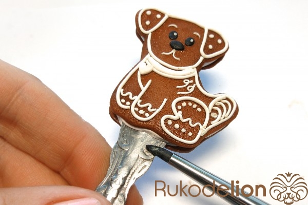 И теперь отправляем ложку на полное запекание, согласно инструкции к полимерной глине. Потом собачку можно будет приклеить к ложке эпоксидным клеем, если вы хотите, чтобы она была несъемной. Такую ложечку можно мыть под краном.