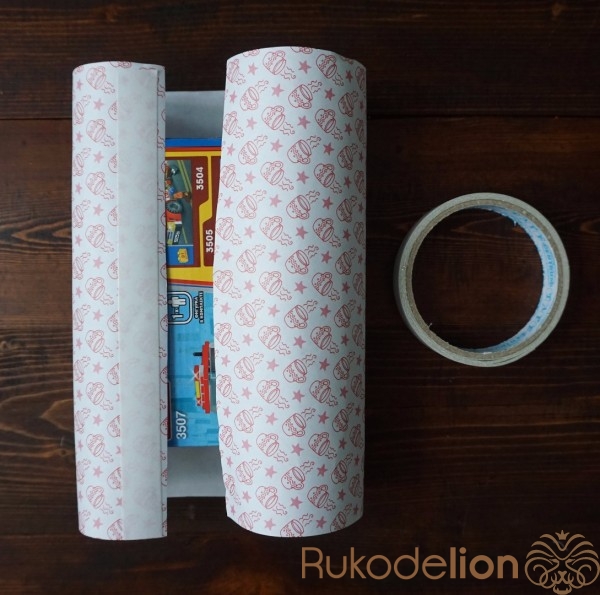 В качестве наполнения мы используем небольшие подарочки, сладости или игрушки, маленькие конструкторы. По своему опыту - лучше выбирать "скромные" подарки, чтобы у деток к наступлению Нового года подарки под елкой не воспринимались как должное и не пропало то ощущение сказки и предвкушения, которые нам как раз хочется "подогреть".