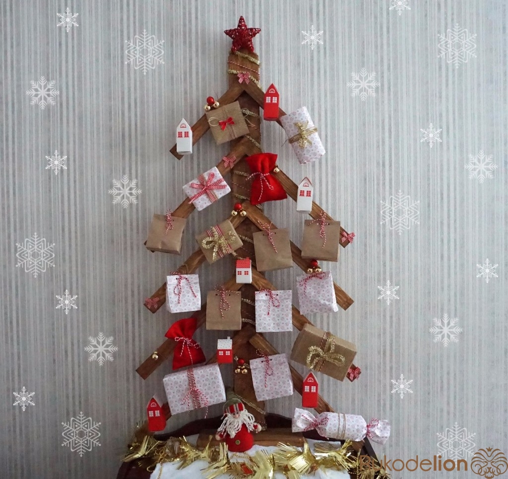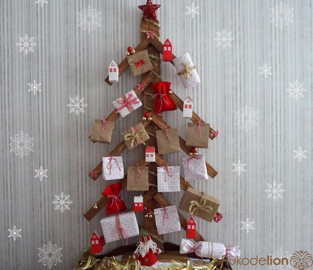 В нашем доме это деревянная елочка на которую можно подвесить подарки, в высоту она чуть больше метра. Дети смогут сами выбрать тот сюрприз, который хочется.
