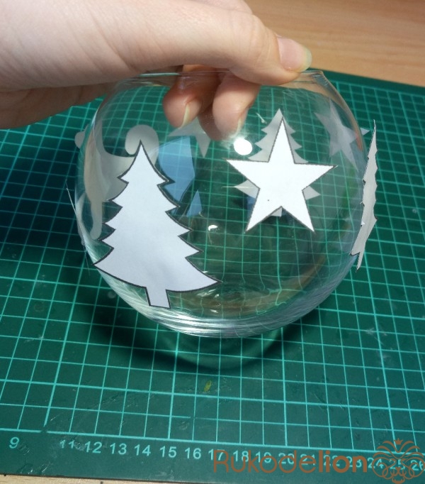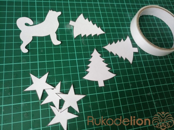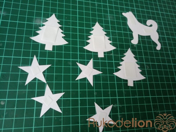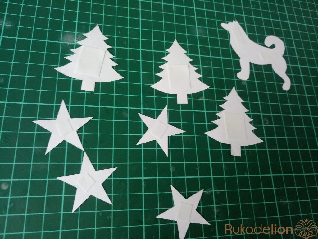 Вырезаем и с обратной стороны приклеиваем небольшой кусочек двухстороннего скотча.