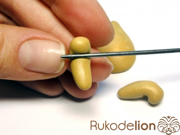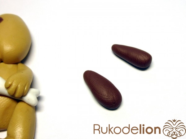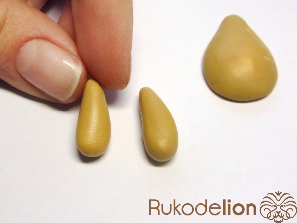 Также из коричневой глины сформируйте два уха в форме продолговатых капель длиной около 1,5см.