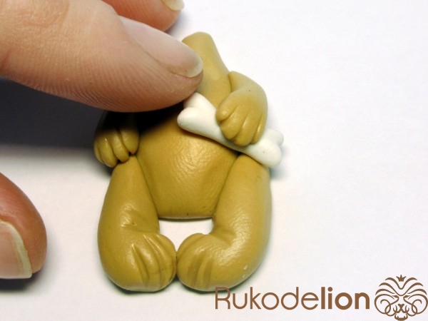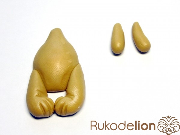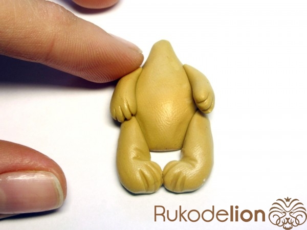 Нижние лапки сделайте в форме продолговатых колбасок длиной около 2см, сужающихся к верху.