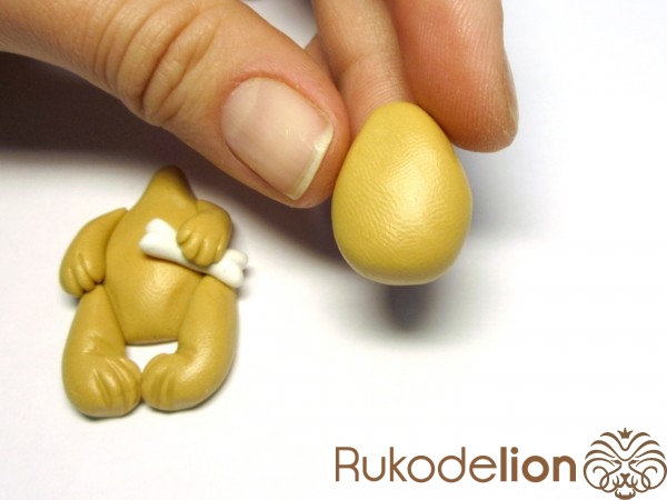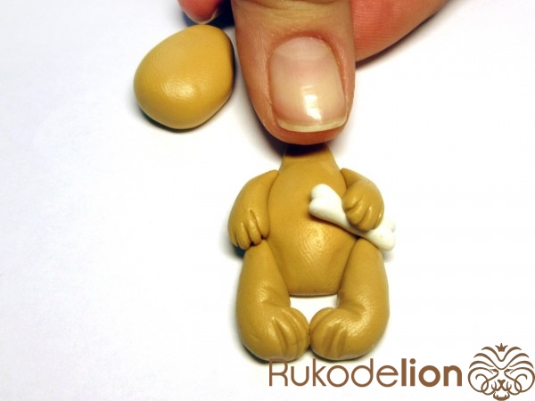 Из полимерной глины бежевого цвета сформируйте туловище собачки в форме широкой капли высотой 2,5см.