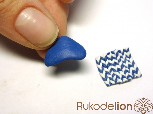 Теперь сформируйте таким же способом более широкое полотно. Из синей глины сделайте треугольную заготовку шапочки.