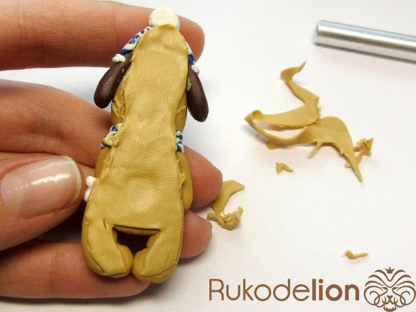 Теперь отправляем нашу собачку запекаться в духовке по инструкции к полимерной глине.