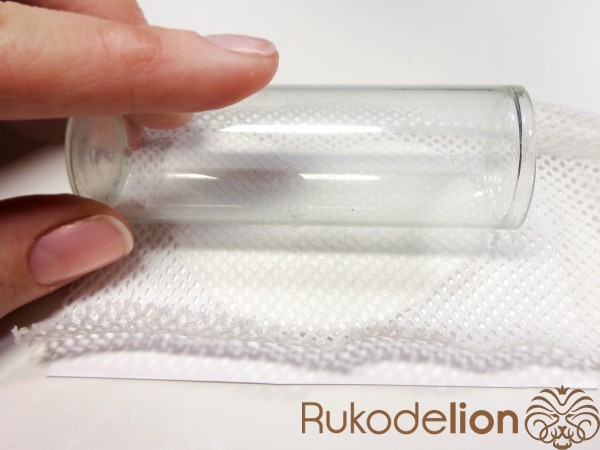 Положите сверху ткань с фактурой в виде сеточки и прикатайте ее к поверхности глины.