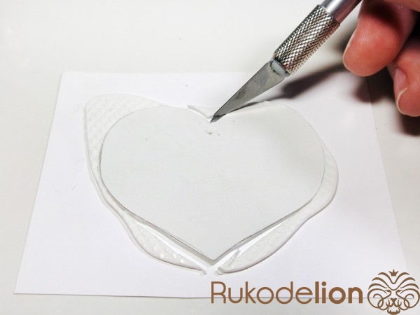 Поместите надпись на сердце и затем слегка ее придавите сверху губкой, чтобы она прочно прилипла к поверхности сердца.