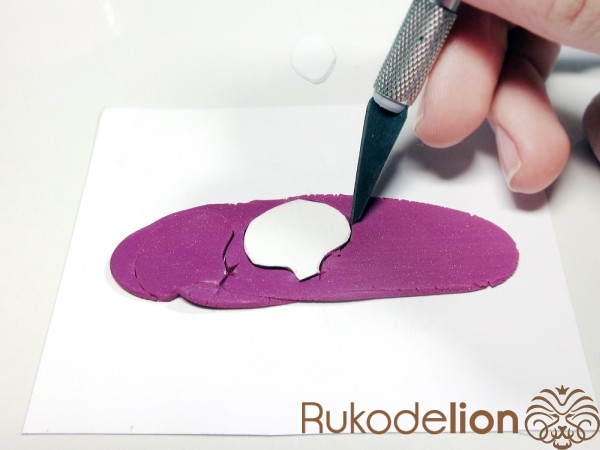Центральный лепесток можно вырезать из пласта глины такого же цвета, а можно использовать для этого глину более темного либо более светлого оттенка.