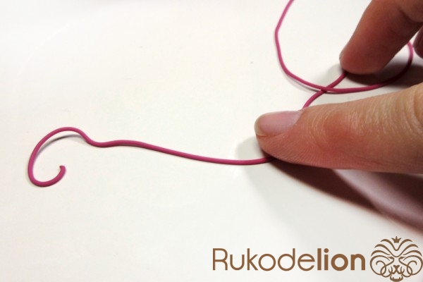 Для начала глину темно-розового или другого цвета скатайте в ровный жгут диаметром 1-1,5мм.