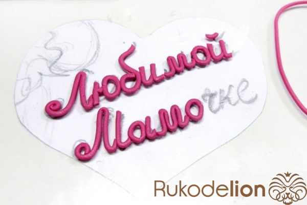 Затем нужно вылепить желаемую надпись. Ее можно вылепливать непосредственно на самом сердце, а можно вылепливать на стекле, а затем перенести на сердце.