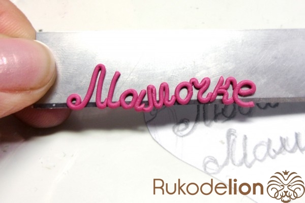 И из этого жгута формируйте буквы. В данном примере шаблон с надписью был положен под стеклышко, а надпись выкладывалась верху на стекле по этому шаблону. Чтобы надпись было проще снять с рабочей поверхности, все буквы желательно делать слитными (слепленными друг с другом).