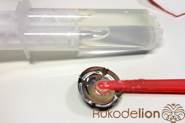 В маленькой емкости разведите двухкомпонентный эпоксидный клей в пропорциях, указанных в инструкции к клею. Клей удобнее использовать тот, у которого время застывания около 15 минут. Оба компонента клея тщательно перемешайте палочкой.