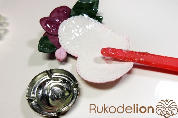 Цветок можно оставить в таком виде, но если у вас есть запекаемая краска для полимерной глины или жидкая полимерная глина белого цвета, то при помощи маленькой кисточкой можно окрасить края лепестков в белый цвет.