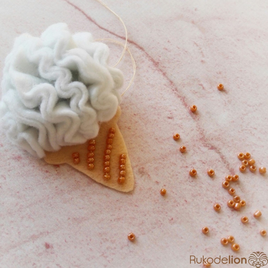 Лето - время красоты. Преображаемся. Удивительно, но и летние украшения можно сшить из фетра. Подготовила мастер-класс по броши в виде вкусного мороженого.