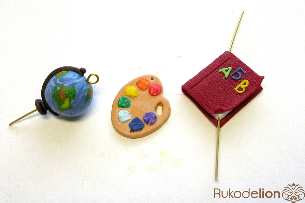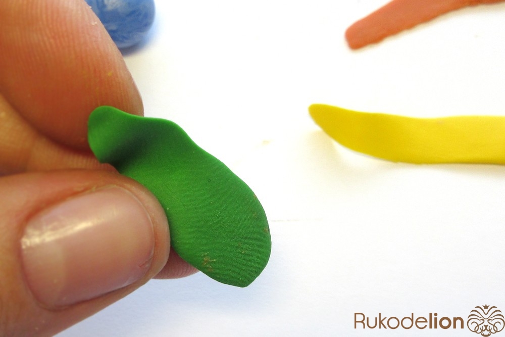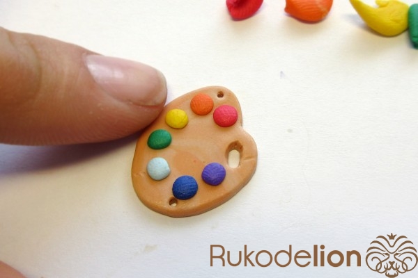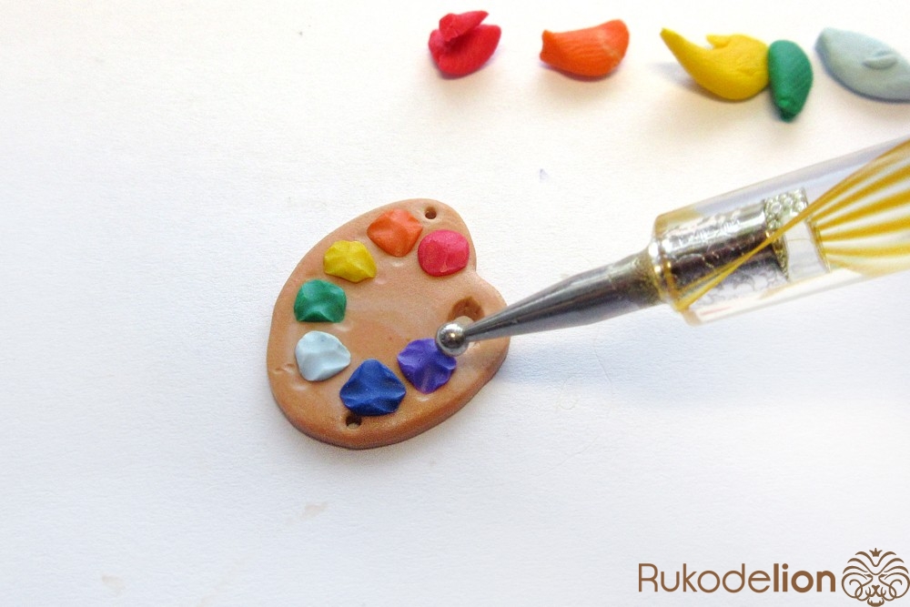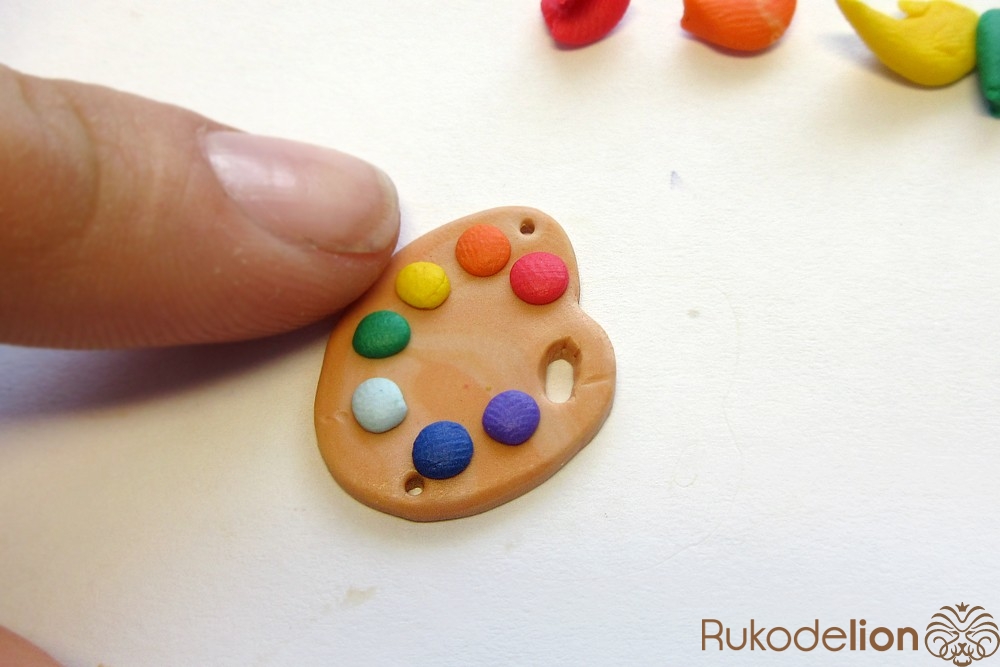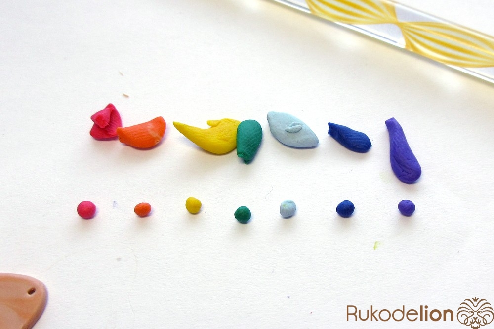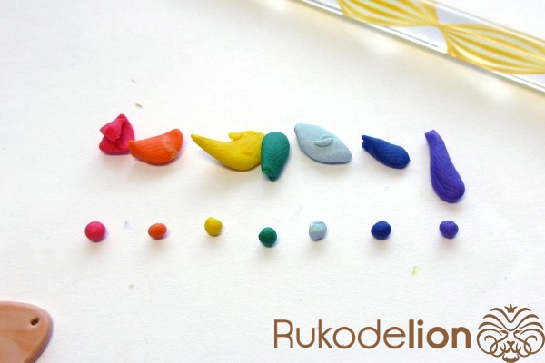 - запекаемая полимерная глина красного, оранжевого, желтого, зеленого, голубого, синего, фиолетового, белого, вишневого, бежевого, темно-коричневого цвета;