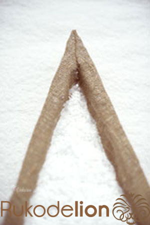 11. Обмотайте шпагатом елочку. Придерживайтесь параллелей в диагональных линиях. Используйте шпагат, который точно совпадает по цвету с цветом с мешковиной.