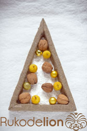 8. Приклейте ветки ели в панно. Какие то веточки закрепите в углах, какие то в «пустых» местах или там, где вам подскажет интуиция.