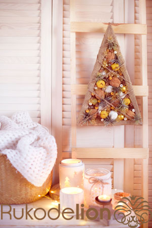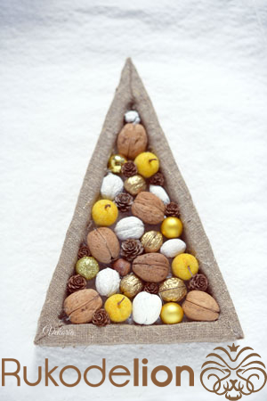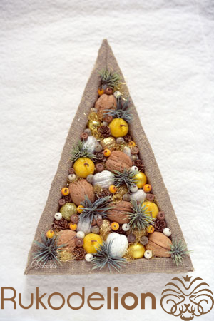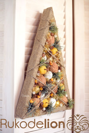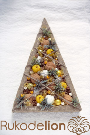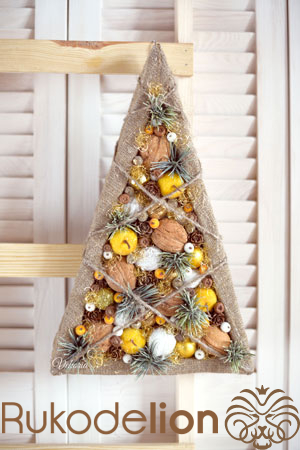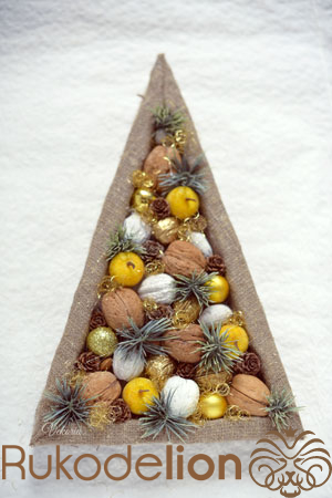 12. Наша елочка готова! Повесите панно на петельку, которая уже создана за счет обматывания панно шпагатом.