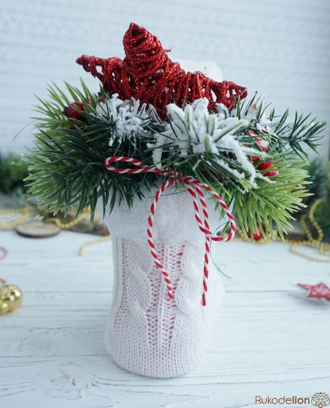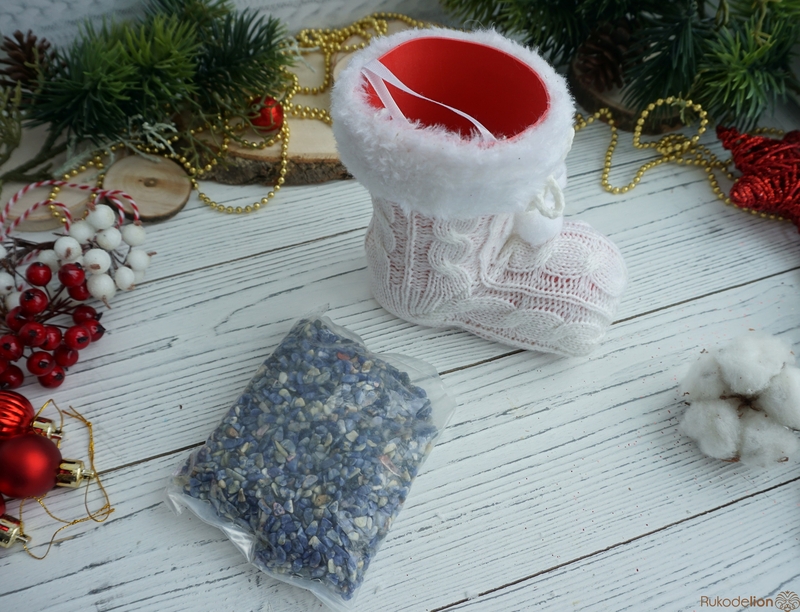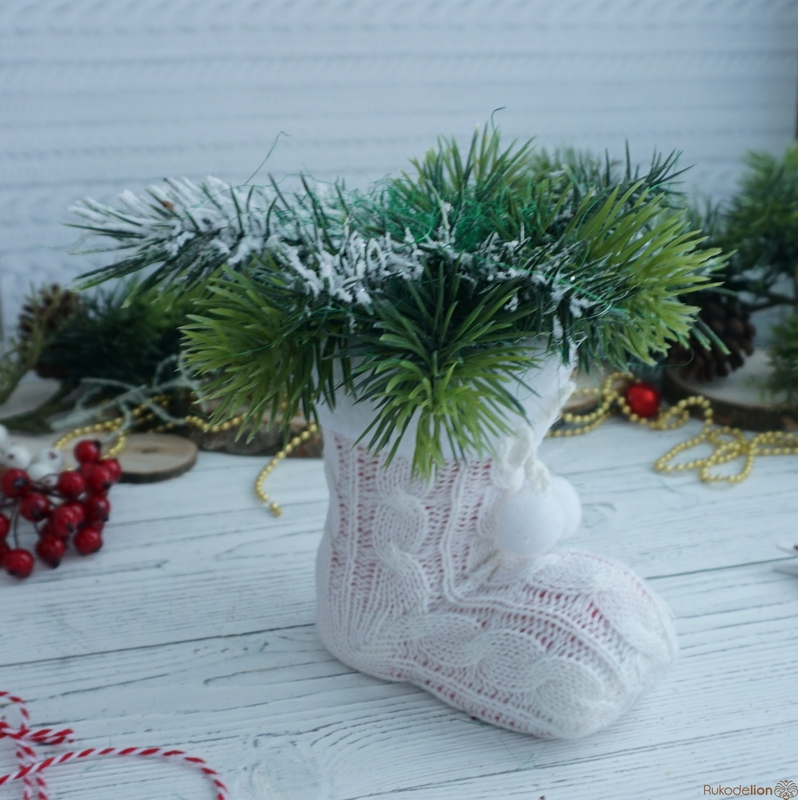 Я использовала готовый сапожок, но можно сделать самостоятельно, например, вырезать форму из пенопласта и обклеить мхом, сизалем или другим материалом.Шаг 2