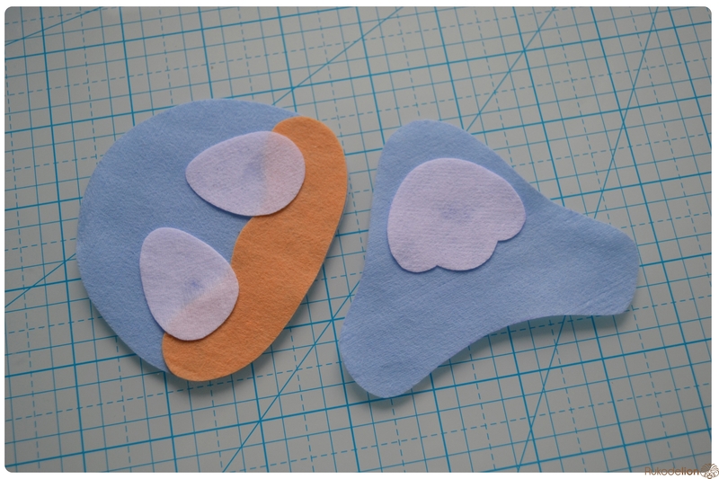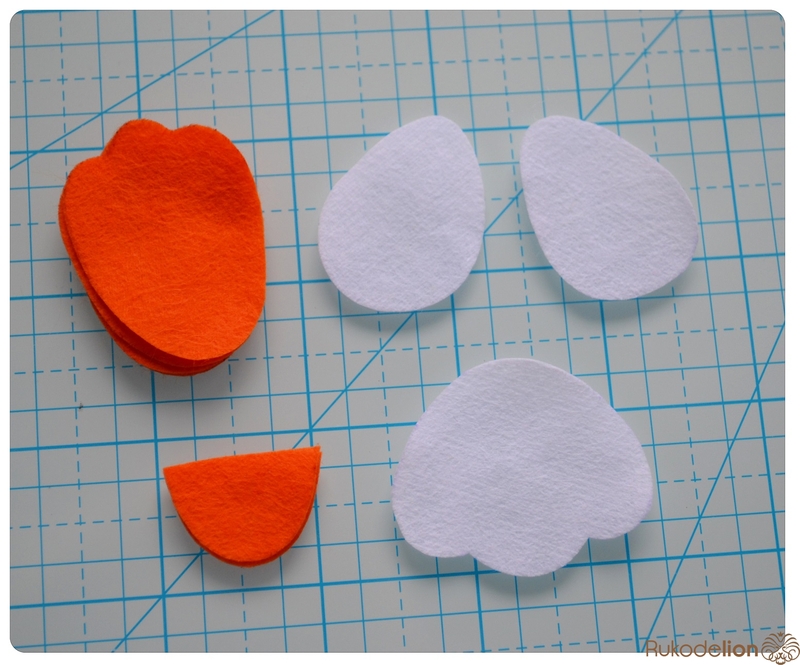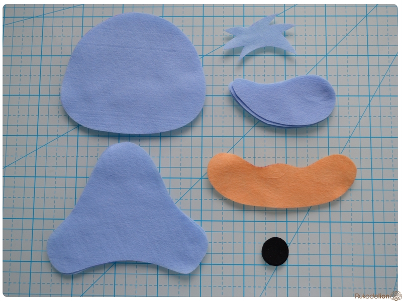 1. Фетр: голубой, белый, бежевый, оранжевый, черный, синий. Я буду использовать мягкий испанский 100% полиэстеровый 0,5 мм толщиной фетр