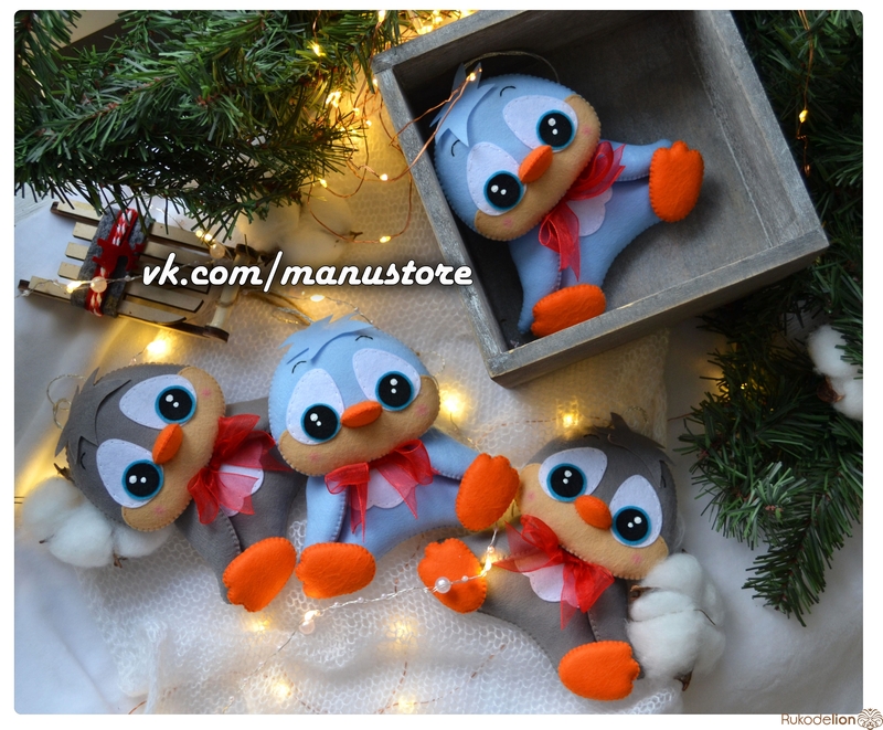 Мы продолжаем с вами шить ёлочные игрушки. Предлагаю сегодня создать вот такого милого пингвинчика!