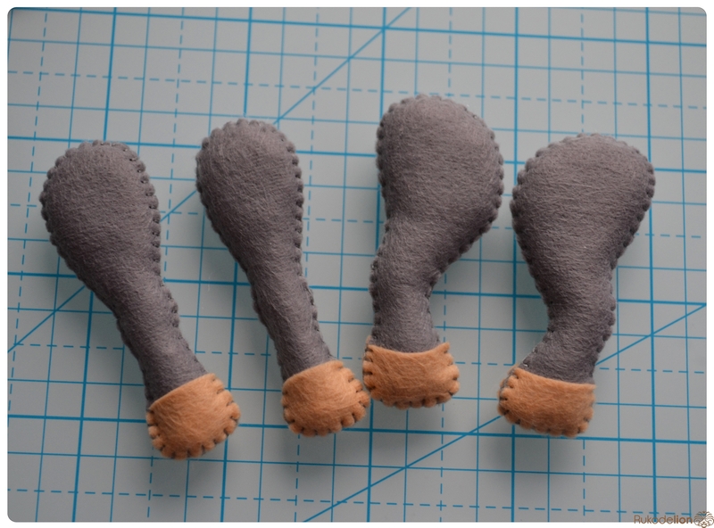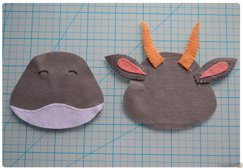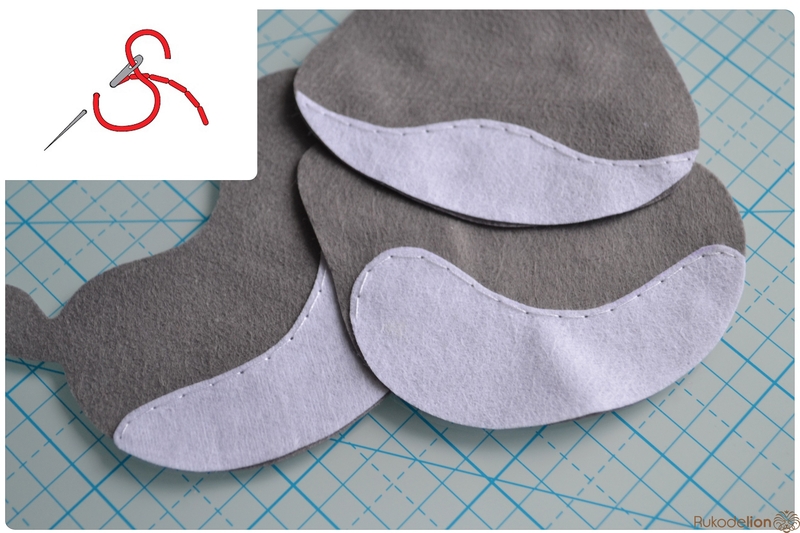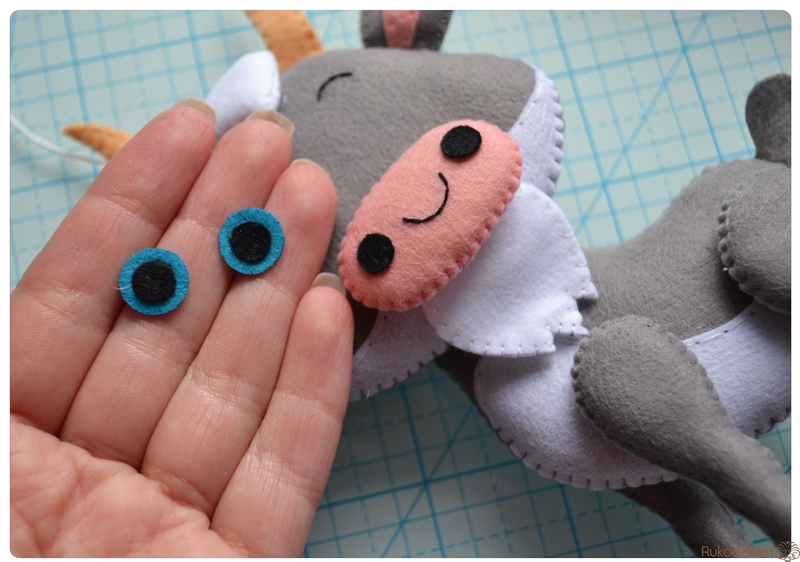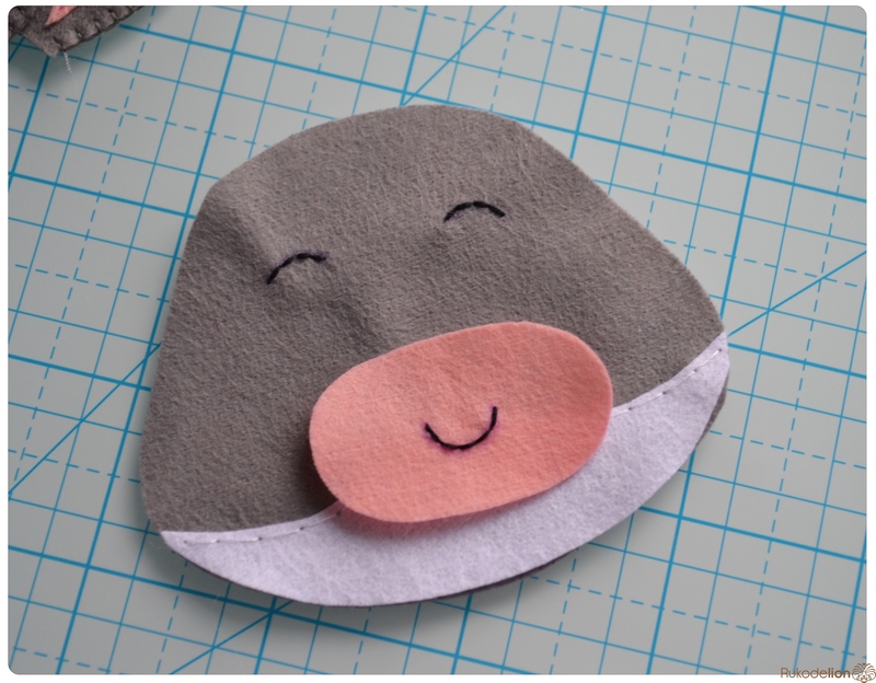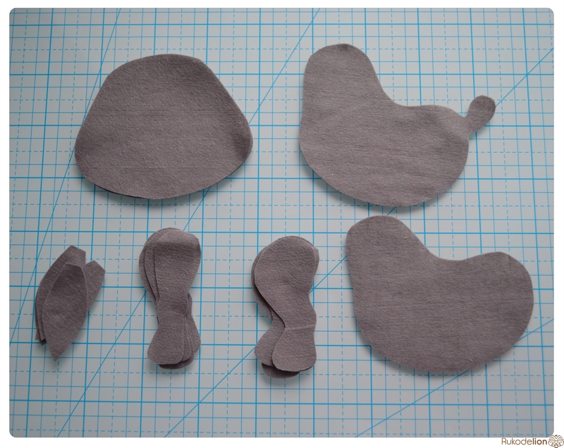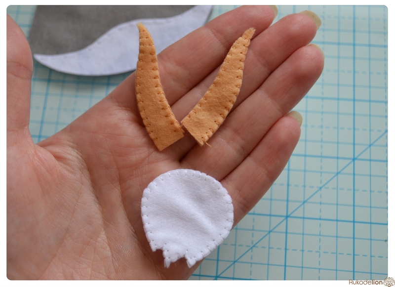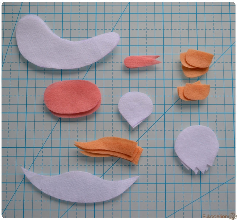 1. Фетр: серый, белый, бежевый, черный, розовый, синий. Я буду использовать испанский 100% полиэстеровый мягкий 0,5 мм толщиной фетр.