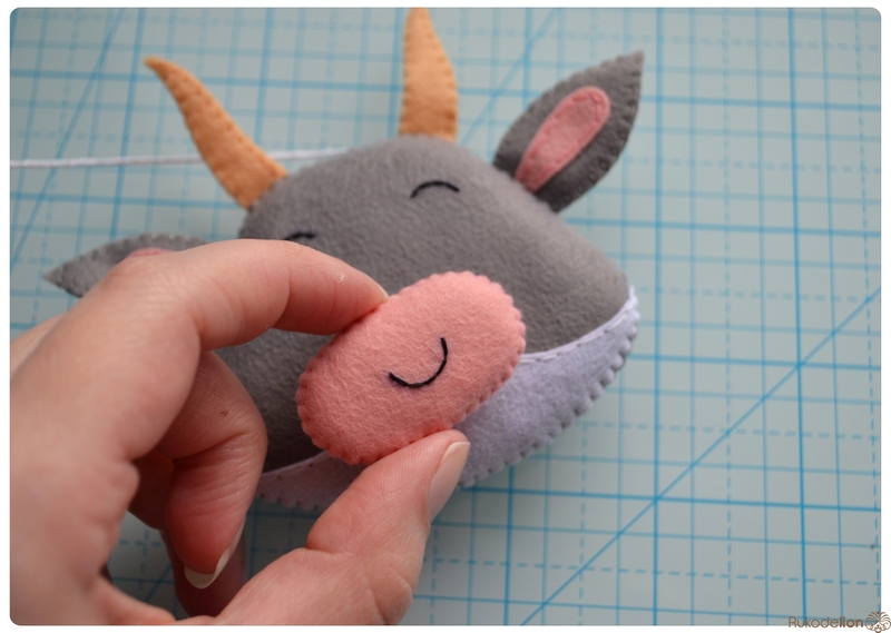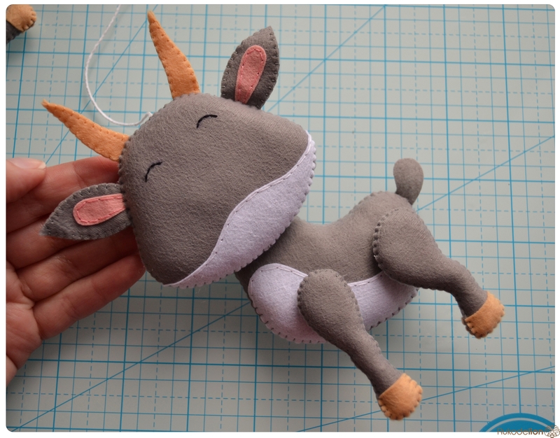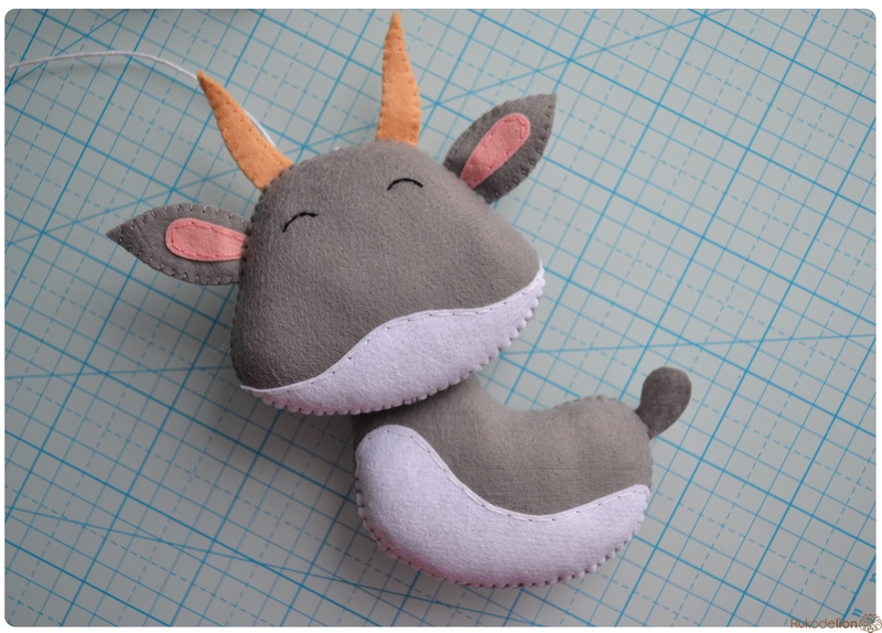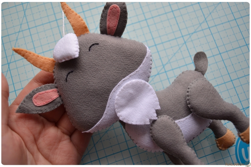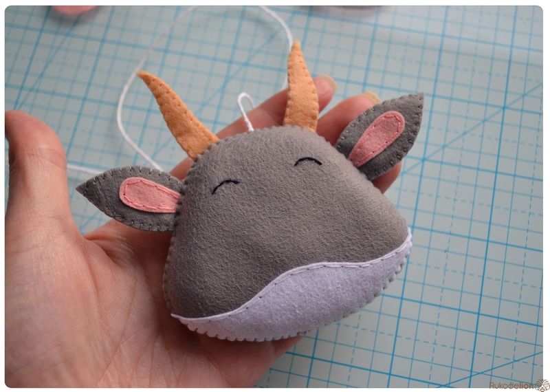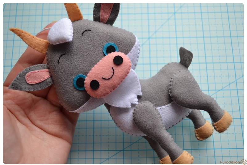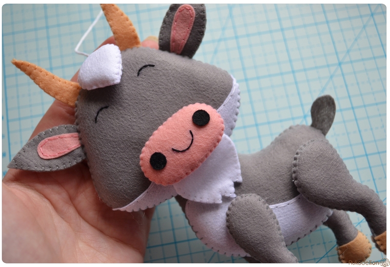 Сегодня мы продолжим с вами шить героев будущих мобилей. Предлагаю дополнить тематику "Ферма" и сшить вот такого фетрового козлика. Я буду шить фигурку высотой 14 см. Вы же можете выбрать любой другой размер, в зависимости от будущей функции козленка. Размер выкройки можно менять при печати в настройках принтера или же на экране, если вы обводите ее с монитора.