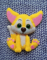 Из молочного фетра вырезаем челочку и два обода глаз, а из розового фетра- две внутренних части ушек. Так же из розового фетра я вырезаю два сердечка - решила сделать такие миленькие пяточки фенеку