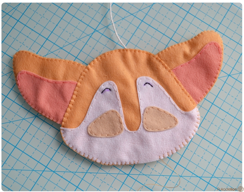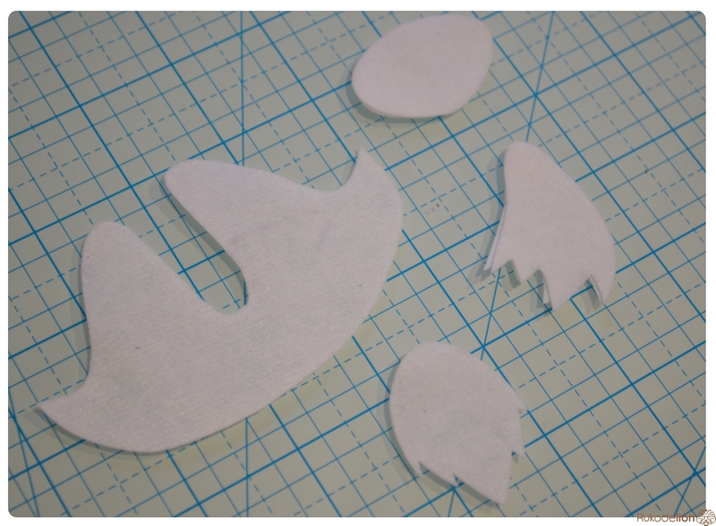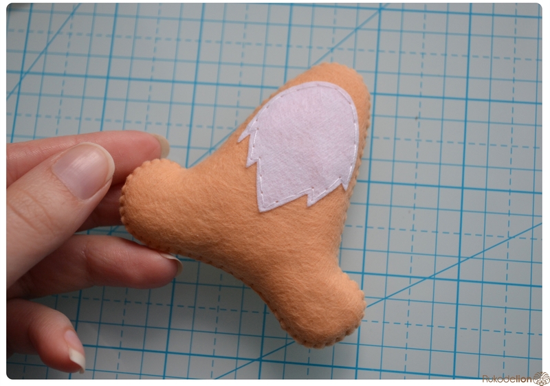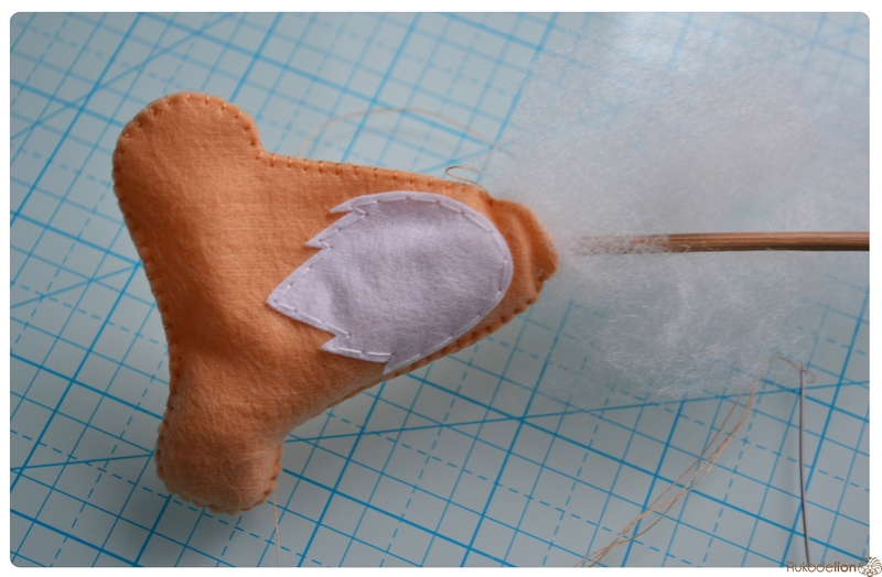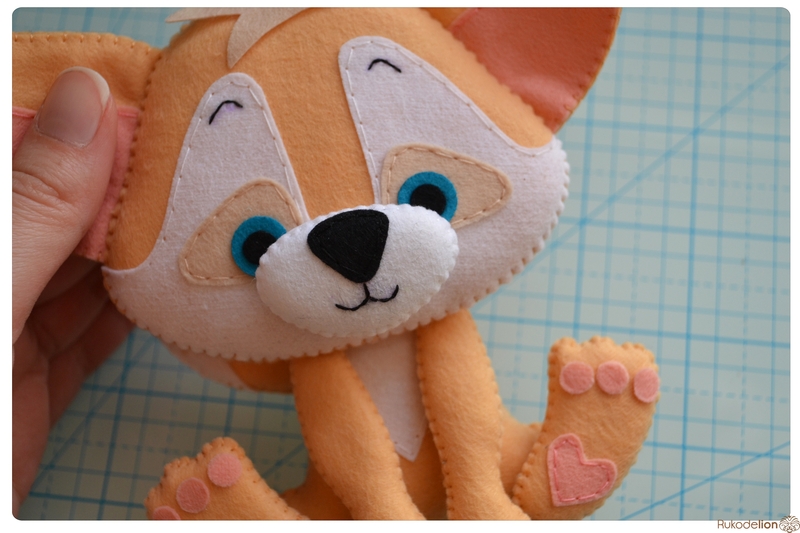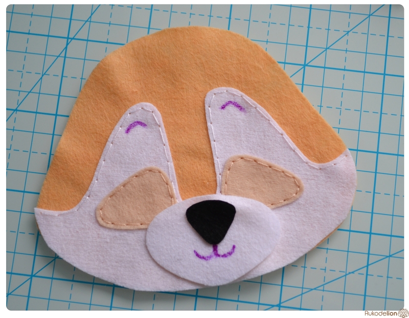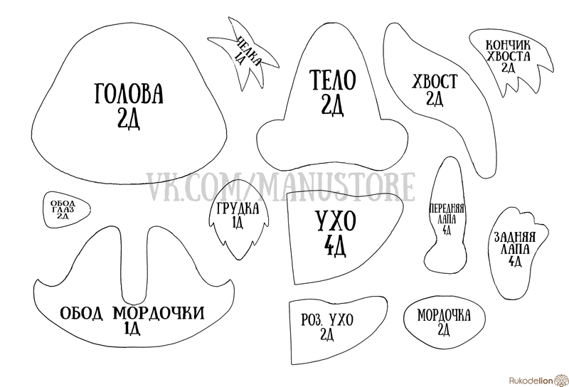 Из белого фетра вырезаем по одной детали обода мордочки и грудки и по две детали мордочки и кончика хвоста