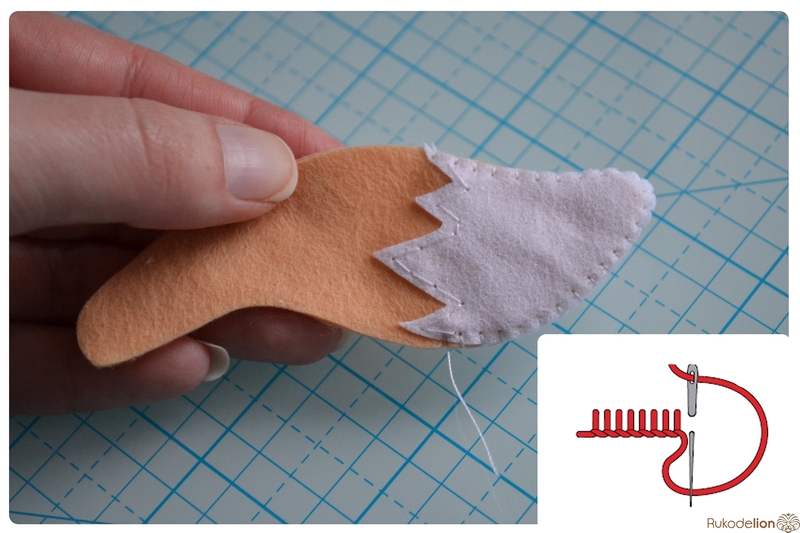 Пришиваем белые детали белыми нитками швом "назад иголка", как это показано на схеме