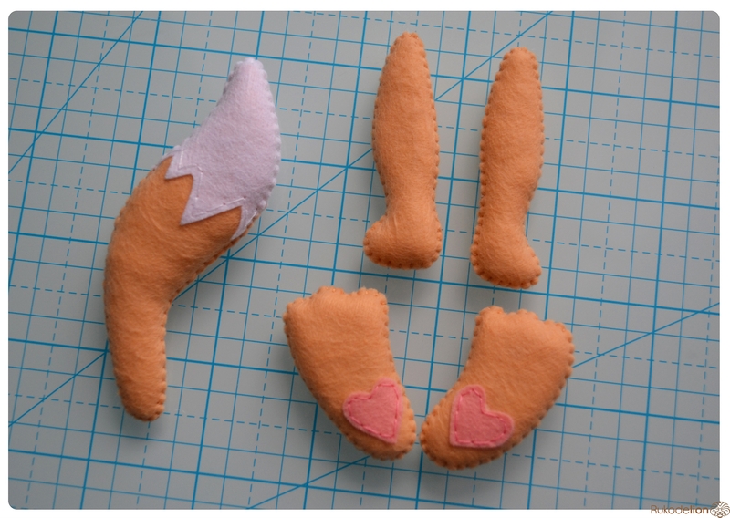Передние и задние лапки мы так же сшиваем и набиваем синтепоном. Дошиваем и хвостик