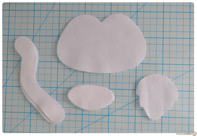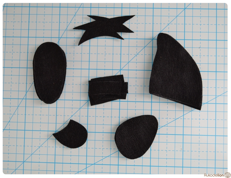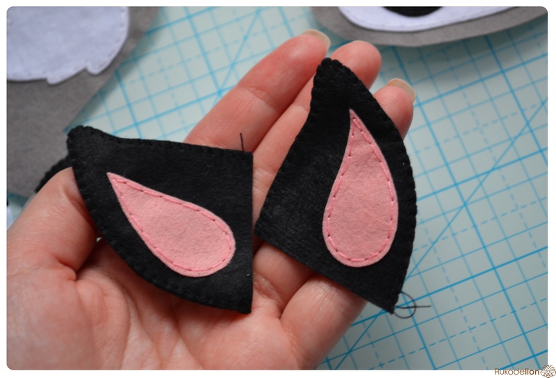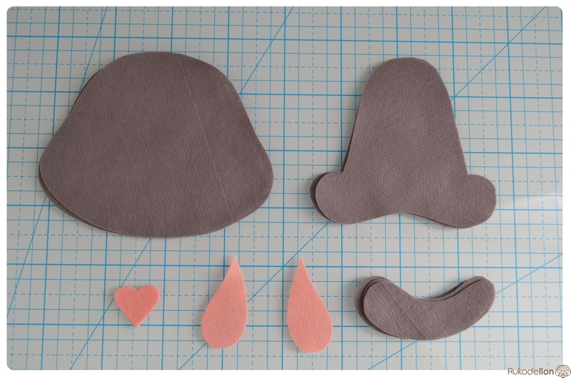 1. Фетр: серый, белый, розовый, зеленый, черный. Я буду использовать испанский 100% полиэстеровый мягкий 0,5 мм толщиной фетр.