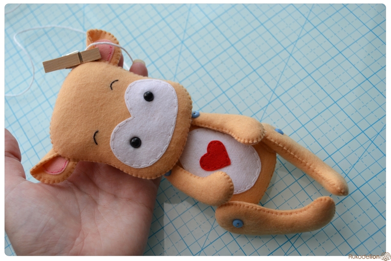 Сегодня мы продолжаем с вами шить серию зверят большелобиков для мобиля. Все зверята буду висеть за прищепочку, как на сушилке=)