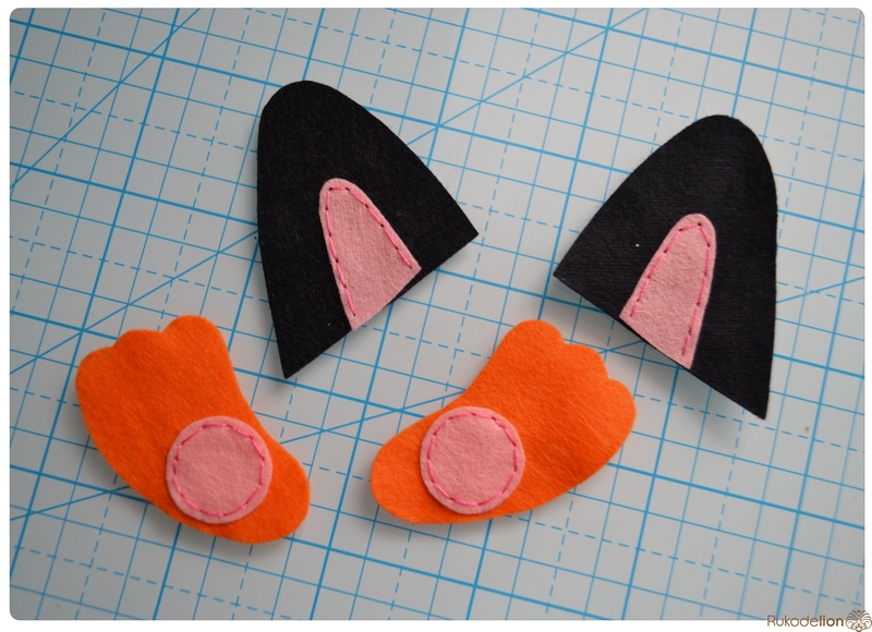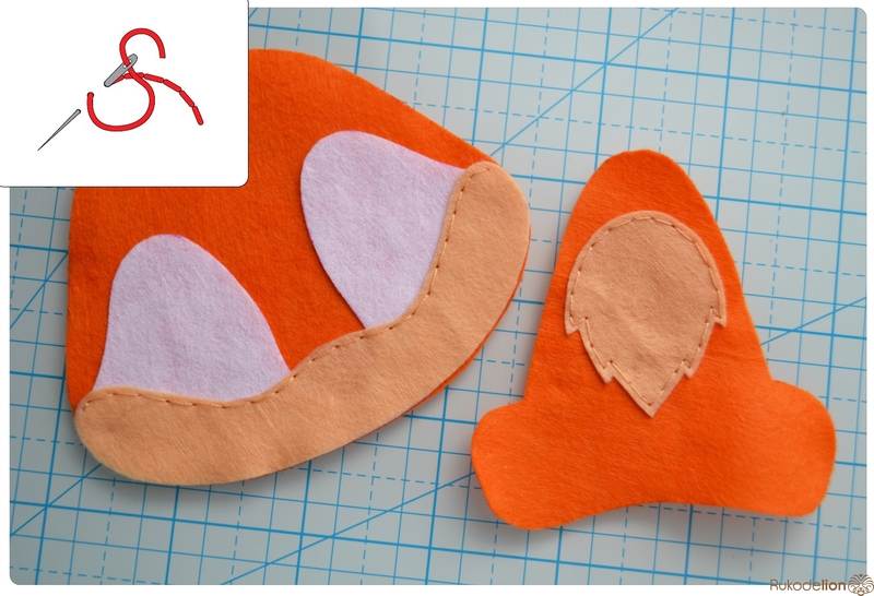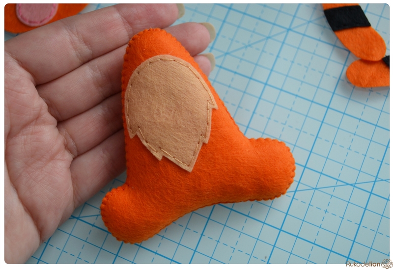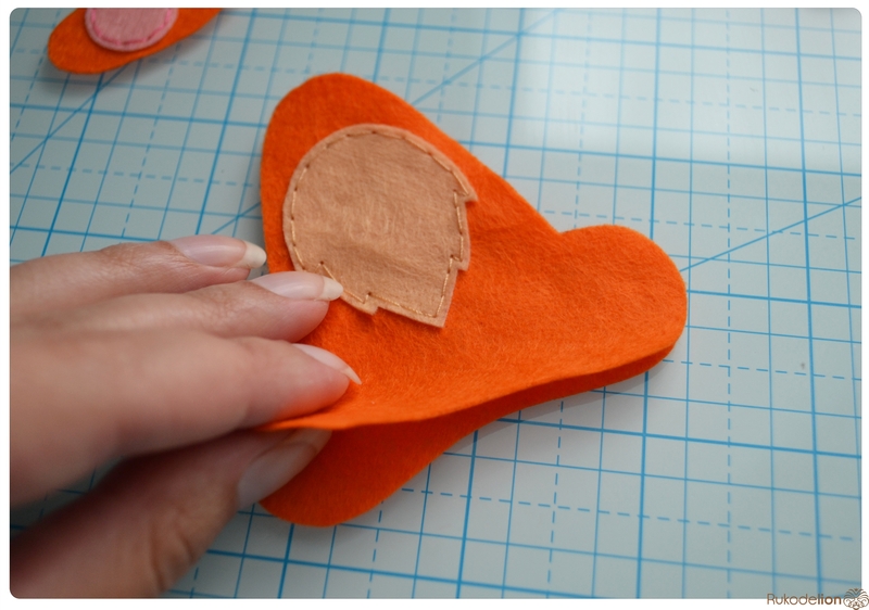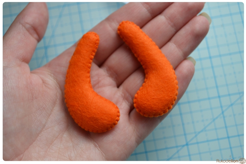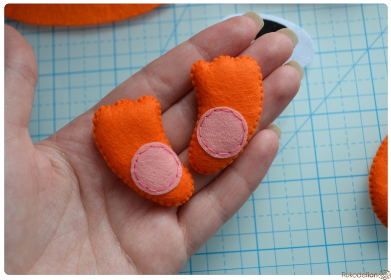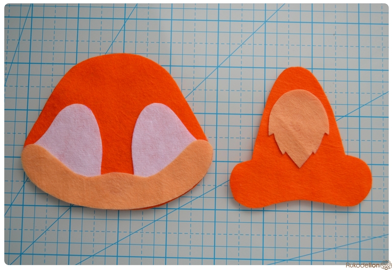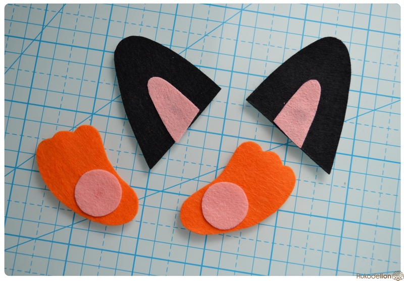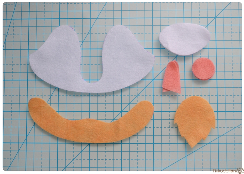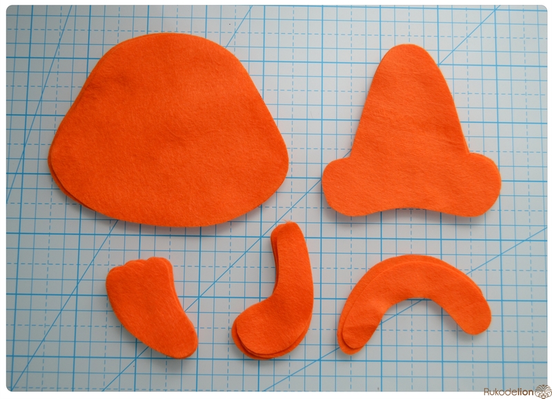 1. Фетр: бежевый, белый, черный, оранжевый, розовый. Я буду использовать испанский 100% полиэстеровый мягкий 0,5 мм толщиной фетр.